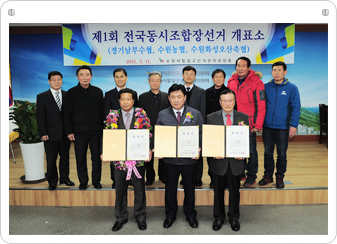 제1회 전국동시조합장선거에서 염규종 조합장이 당선되었고, 수원시 팔달구 선거관리위원회에서 당선증을 교부 받았습니다.