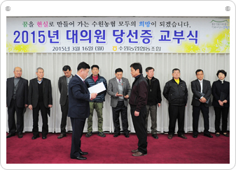 제1회 전국동시조합장선거, (現)염규종 조합장 당선 행사 일시:2015. 3. 11