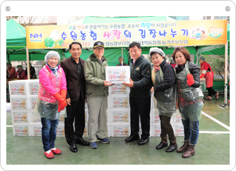 우리농협 조합원이 생산한 효원쌀 1,700포를 수원시 및 봉담읍 에 거주하는 어려운 이웃에게 전달하였으며, 지역사회에서 받은 사랑을 다시 환원하는 뜻 깊은 자리를 가졌습니다.