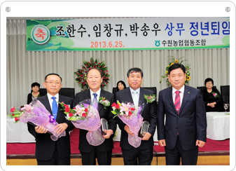 그동안 수원농협의 발전을 위해 헌신하신 권영규 이사님, 김현덕 이사님, 김종일 이사님, 신규철 이사님, 이정재 감사님께 감사를 드립니다.