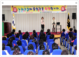 우리농협 조합원과 여성고객들을 대상으로 노래교실을 개강, 300여명의 수강생을 대상으로 매주 1회씩 노래교실을 운영하여 성황리에 종강하였습니다.
