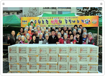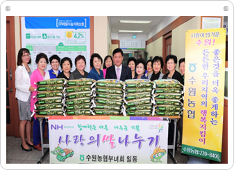 우리농협에서 판매한 상품의 수익일부를 재원으로 하여 수원 지역 소외계층 및 어려운 이웃들에게 효원미 1,000포(10kg)를 전달하였습니다.