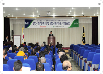 2014년 조합원들의 영농활동 지원강화를 위한 영농회장 회의 및 우리농협의 새로운 조직으로 거듭나기 위한 영농 회장단 창립총회를 개최하였습니다.