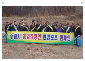 수원시 농업경영인들은 광교산에서 환경보호 캠페인을 전개 했습니다. 캠페인을 통해서 경영인들은 친환경 농업에 대한 필요성 및 중요성에 대해 토론하였습니다.