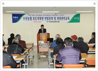 농업기술센터 외부강사를 초청하여 과원관리에 대한 교육을 약 25여명의 조합원이 참석한 가운데 진행하였습니다.