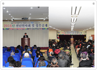 봉단지점 회의실 및 본점 4층 대회의실에서 7천여명의 조합원을 대상으로 신년인사회 및 업무공개를 실시하였습니다.